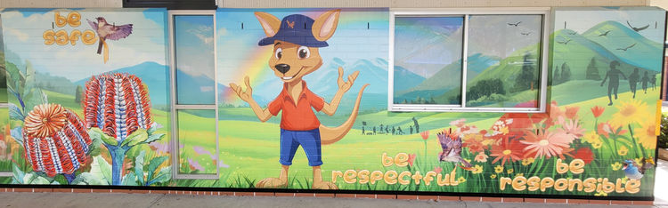 Our school’s PBL mascot is Super Roo, a kangaroo chosen and named by students and staff during the program's launch. You’ll spot Super Roo on our PBL signage, tokens, and murals throughout the school. Super Roo also makes special appearances in classrooms and events, helping us celebrate achievements and announce awards.